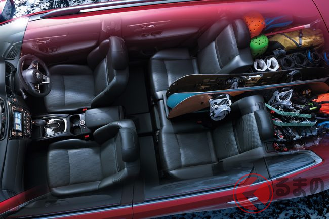 5人乗りモデルなら、キャンプやウィンタースポーツなどを楽しむ人は、荷物の容量を考えなくても何でもポイポイ放り込めるくらい広々としたスペースがあります。