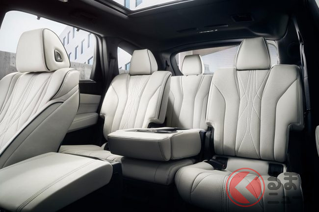 現行MDXは2021年にフルモデルチェンジした4代目です。ボディサイズは全長5039mm×全幅1999mm×全高1704mm。トヨタ「ランドクルーザー」(全長4950-4985mm×全幅1980-1990mm×全高 1925mm)よりも全長・全幅が大きい、3列シート7人乗りの高級SUVです。