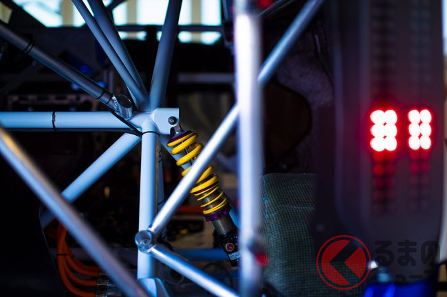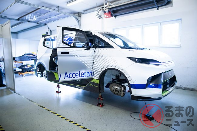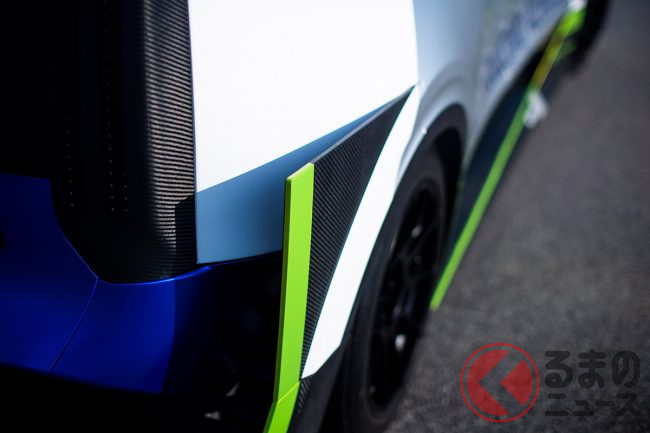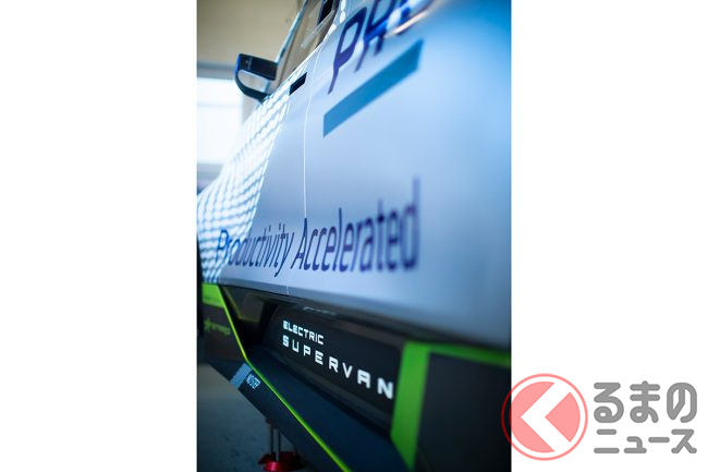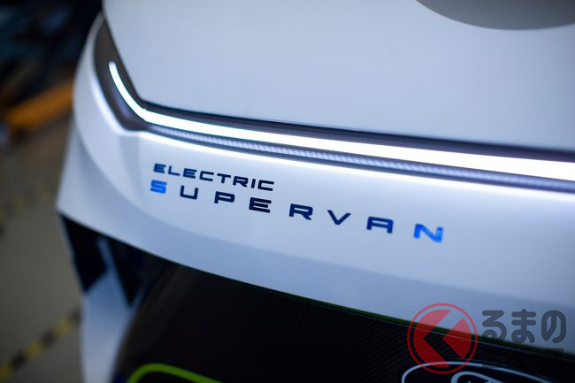 もっとも目立つのは、リア部分の「切り欠き」です。本来であれば荷物などを積載するスペースですが、エレクトリックスーパーバンでは中空構造とすることで空力性能を向上させており、ボディと一体化した大型のウィングとなっています。