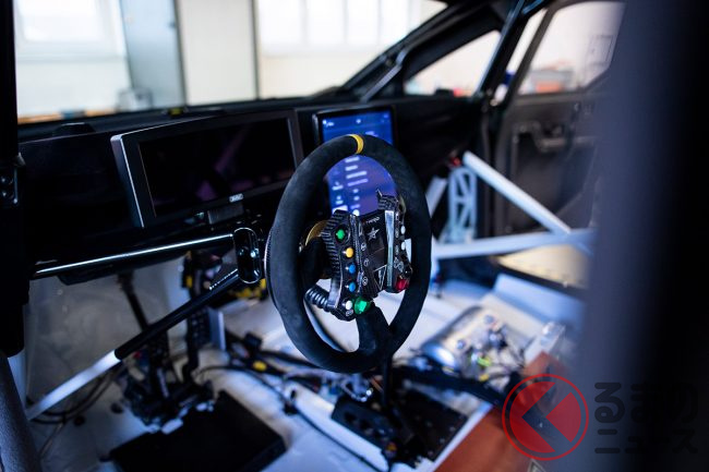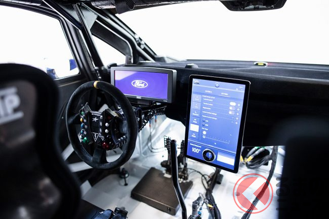 インテリアもほとんどレーシングカーのようですが、センターコンソール上には大型のタッチスクリーンが備わり、「ロード」「トラック」「ドラッグ」「ドリフト」「ラリー」といったそれぞれのドライブモードを選択することが可能です。
