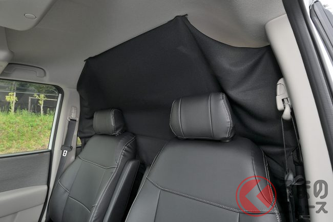 また車内を遮光し車外からの視線も防ぐ「プライバシーシェード」(2万4200円/フロント用)にも、左右の窓に装着するシェードにメッシュと切り替える機能が備わり、換気が可能となっています。