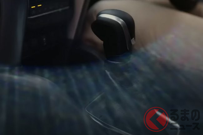 一瞬、ボディ側面が大きく映し出されるシーンもあるほか、車内ではシフトノブを操作するシーンも確認できます。