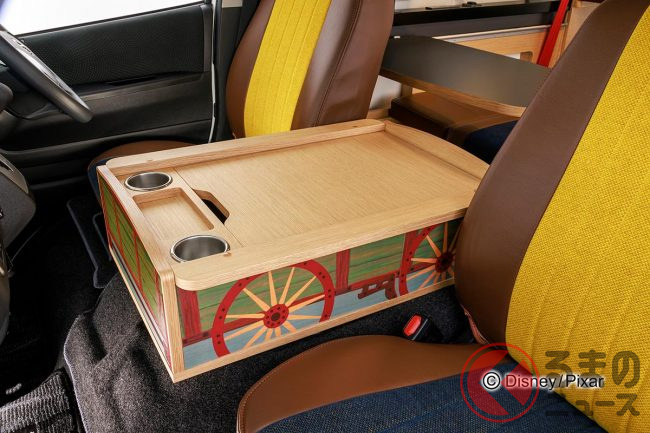 また、運転席&助手席間には、アンディのおもちゃ箱をモチーフにしたオリジナルデザインのコンソール・トレーを装備。フロアマット&ステップマットは『トイ・ストーリー』ロゴ入りのオリジナル仕様としています。
