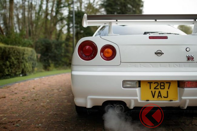 20年モノのR34「GT-R」が2000万超え! 見たことある「シール」も残存!? 英国に旅立ったばかりの絶品個体とは