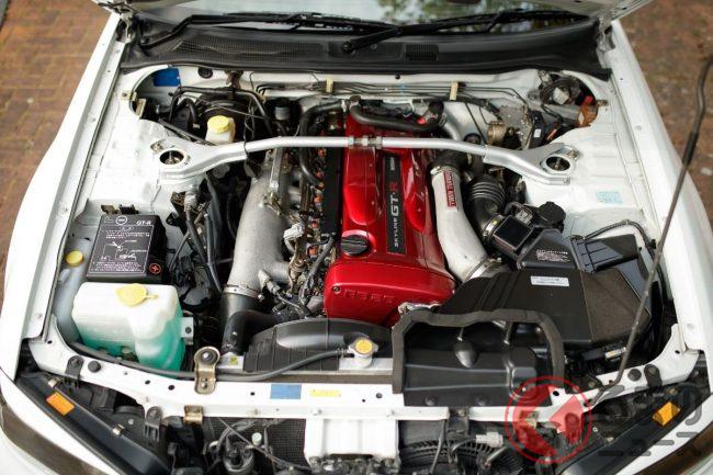 エンジンには、「RB26DETT」2.6リッター直列6気筒ツインターボエンジンを搭載し、これに6速MTが組み合わされ、最高出力約279馬力、約391N・mのトルクを発揮します。