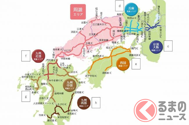 発着型は、「京滋・大阪」「兵庫」「四国」「九州北部」「九州中部」「九州南部」の発着エリアから中国地方までの往復と、中国5県の乗り放題がセットになったものです。期間は2日間と3日間から選べます。料金は、普通車が7100円から1万4800円、軽自動車等(二輪車含む)が5700円から1万1800円です(いずれも税込み)。