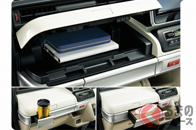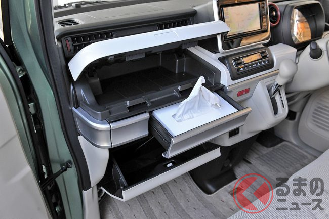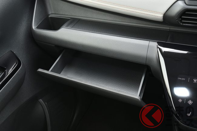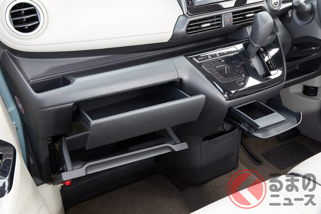ちなみに実質的な兄弟車である日産「サクラ」は専用デザインのインパネを採用したため、この引き出しタイプの収納は備わらないので、現行軽自動車のEVでは唯一の装備ということになります。