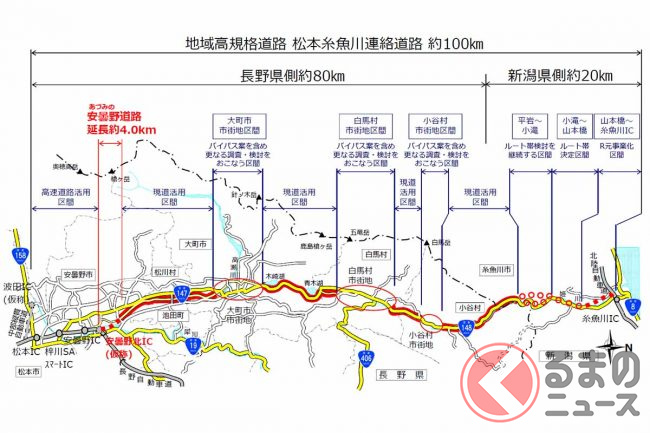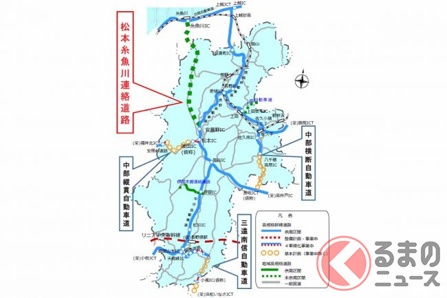 長野道直結! 新規事業化された「安曇野道路」とは? 約100kmの松糸道路計画が長野と新潟で進行中!