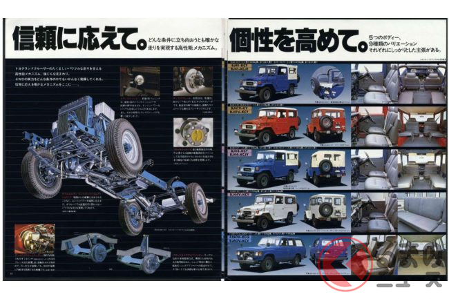 発売から2年後には、6気筒3,980ccの2H型ディーゼルを追加。後期にはターボやEFIなどのハイパワーエンジン搭載モデルも追加され、オートマチックトランスミッション、デフロックなどの機能も次々に設定されました。