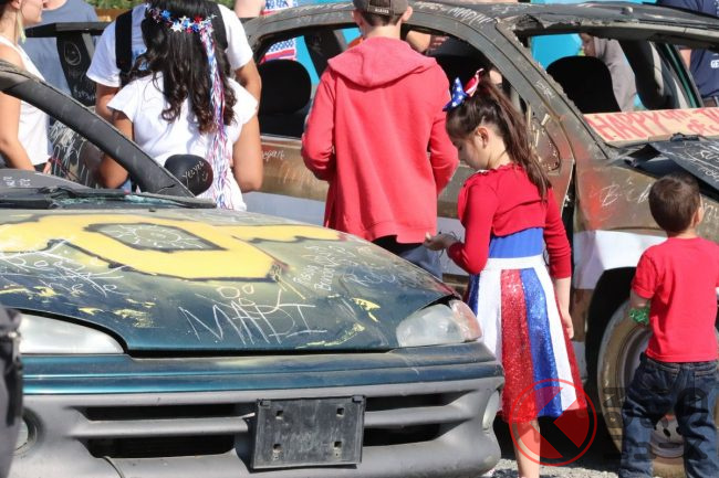 クルマには思い思いのペイントが施されていて、なかには「JUST MARRIED!」や「DOMOINOS PIZZA」など、メッセージじみた文字を描いた参加者もいます。