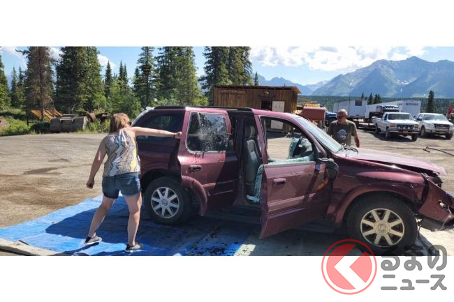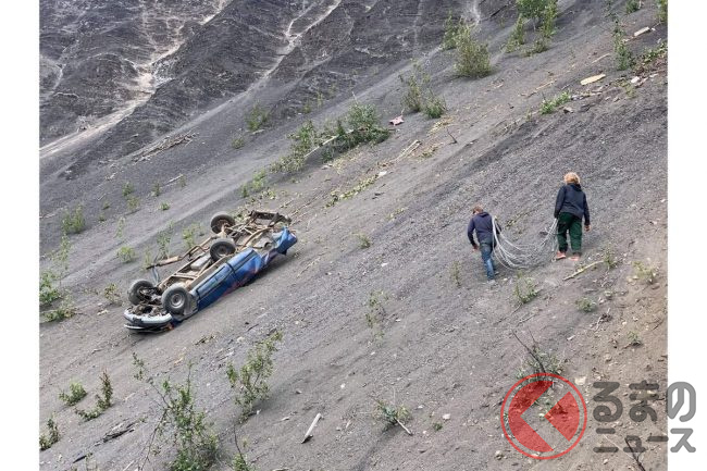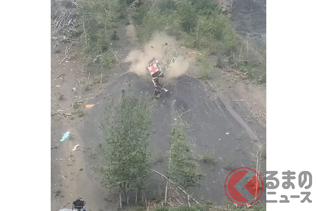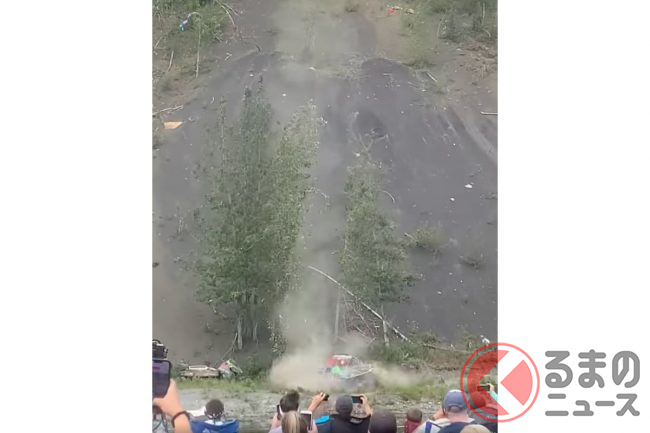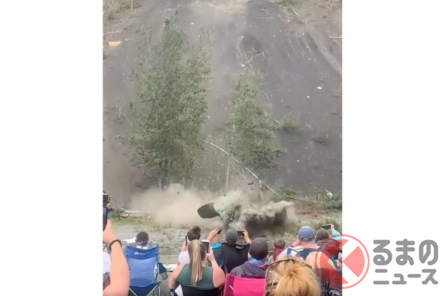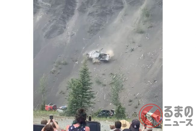なぜクルマが崖から落ちていく…? 次々と落ち廃車状態に!? 謎深まる米開催された祭事とは