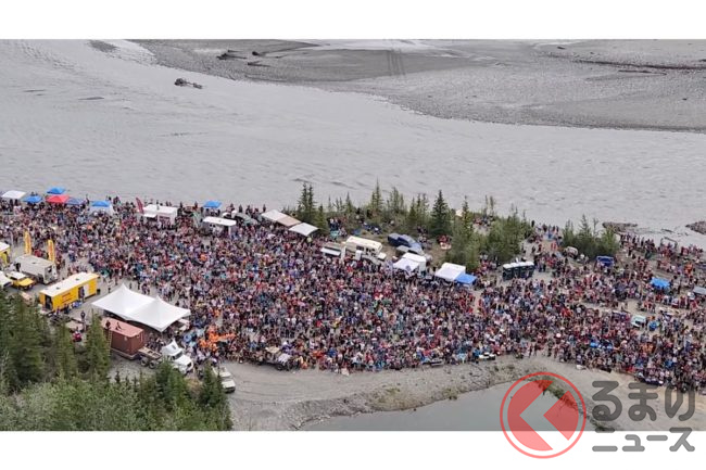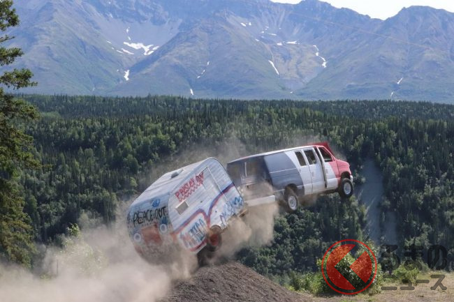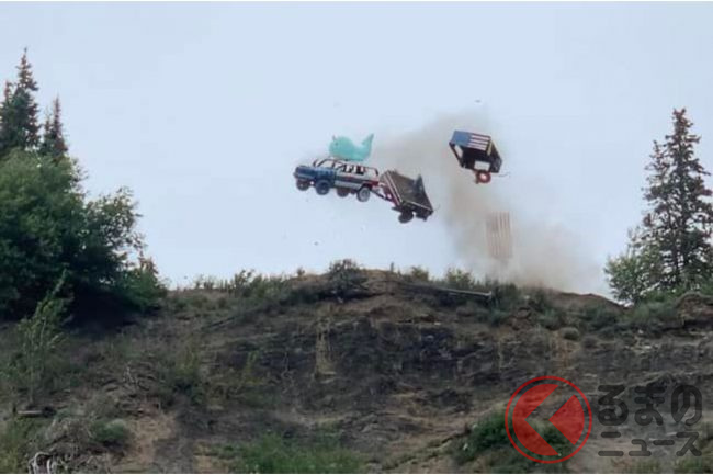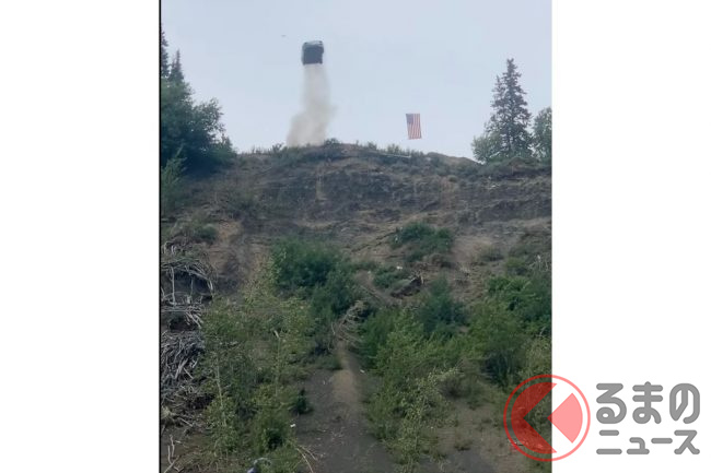 2022年7月4日、アメリカのアラスカ州で行われた「Arnie's」というイベントで、クルマが次々と崖から飛び降りました。このイベントは独立記念日を祝うイベントです。