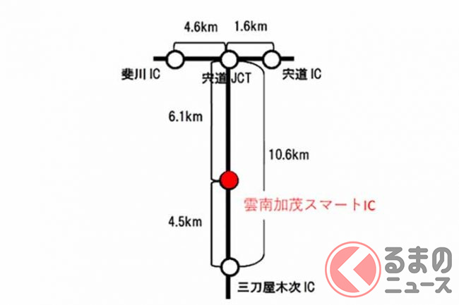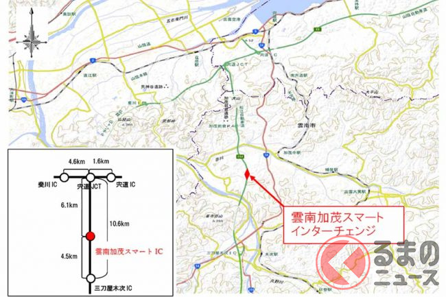 雲南市(島根県)とNEXCO西日本中国支社は2022年7月13日、松江道で建設を進めてきた「雲南加茂スマートIC」が8月7日15時に開通すると発表しました。