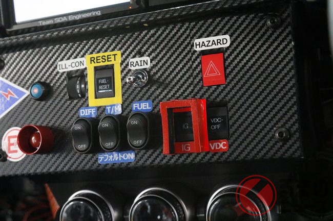 富士から投入されたダクト付きボンネットは、菅生からカーボン製へ変更することで軽量化しているほか、懸念のトランスミッションはGR開発の強化品を導入(ギア比などはスバル専用)。