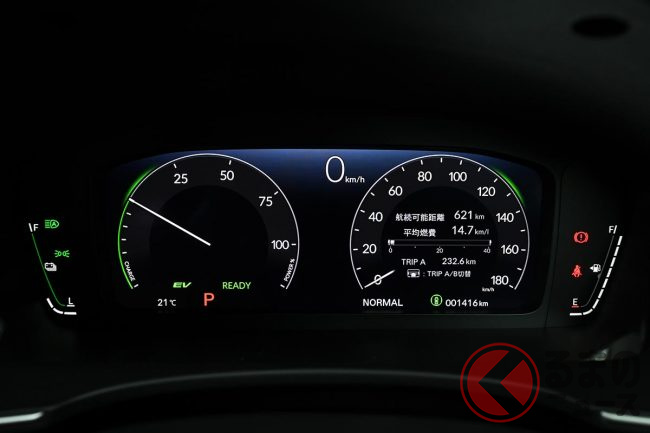 このハイブリッドはモーター走行領域が広く、従来はEV(電気自動車)のようにモーター走行感が印象的な乗り味でした。「ヴェゼルe:HEV」や「ステップワゴンe:HEV」などを運転したことがある人であればご存じでしょう。