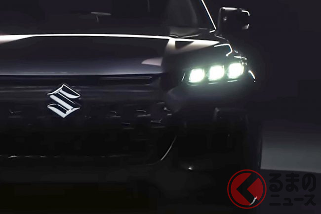 スズキがタフ顔「新型SUV」初公開! 3眼ヘッドライト&ヘキサゴングリル採用の新型「グランドビターラ」発表! トヨタ協業でインド市場に導入