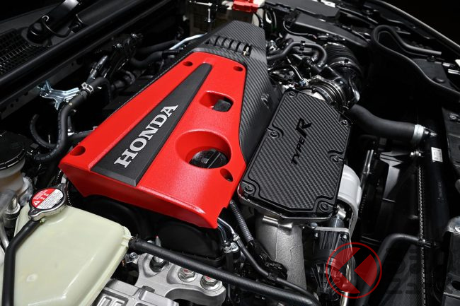 まずはエンジン。排気量2リッター直列4気筒ターボという形式は変更されていないようですが、資料には「スポーツエンジンの魅力(高出力・高レスポンス・高回転)を極限まで追求」「出力・トルク・レスポンスを磨き上げた究極のVTECターボエンジン」と書かれています。