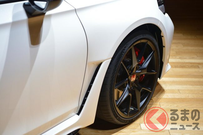 その理由のひとつがリアフェンダーで、先代はシビックの標準車と共用していましたが、新型はタイプR史上初めてタイプR専用のリアフェンダーを組み合わせたことが大きなトピック。