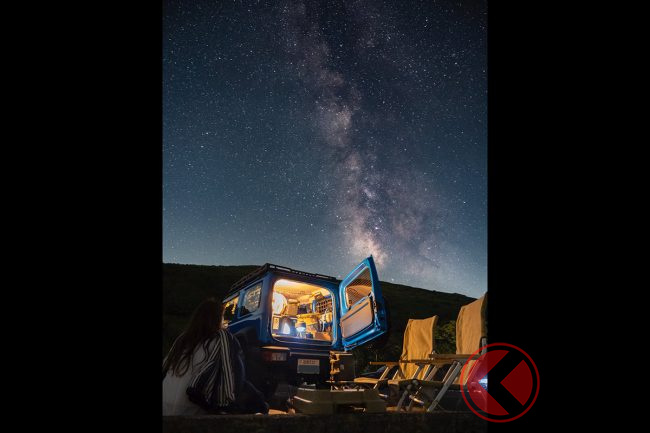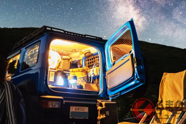 スズキ最強SUV「車中泊仕様」爆誕! 究極の「マイルーム」が凄い! 「ジムニーシエラ」カスタム&満天星空がスゴすぎた!
