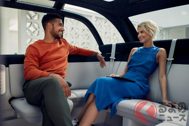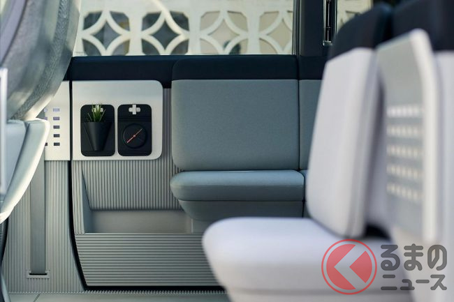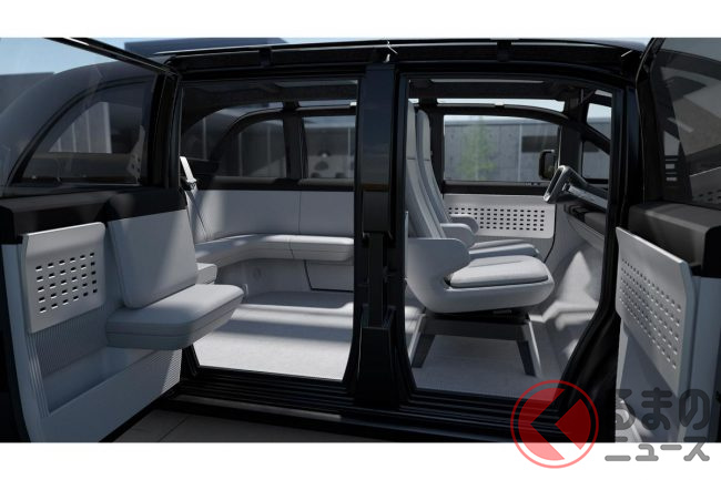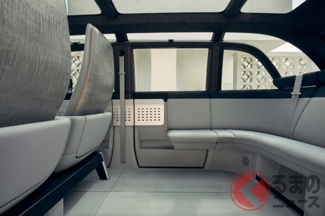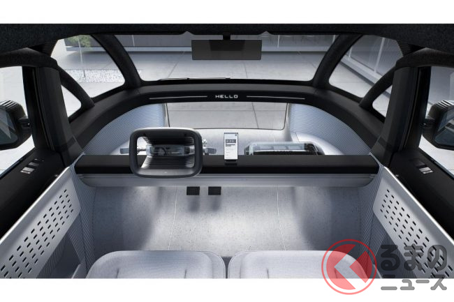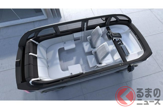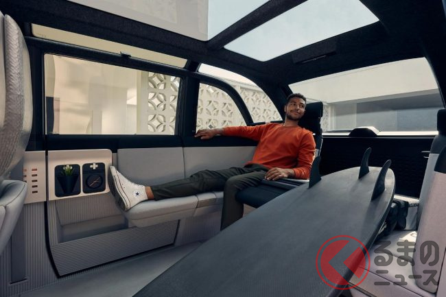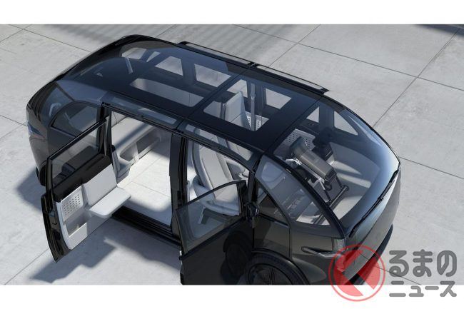 ライフスタイルビークルは、ミニバンのようなボディ形状が特徴的。公開された車両の画像では、丸みを帯びた近未来的なシルエットのボディ側面にウォルマートのロゴが配置されています。