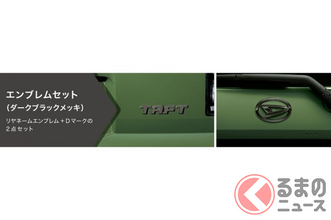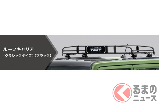 タフトのディーラーオプションには、「フードエンブレム(ダークブラックメッキ調)」「ルーフキャリア」「エンブレムセット(ダークブラックメッキ)」も用意されています。