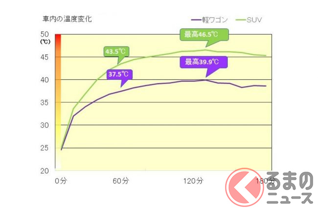 乗っていたクルマのボディカラーは黄色ですが、(熱を吸収する)黒だとさらに高温度に達するかもしれません」