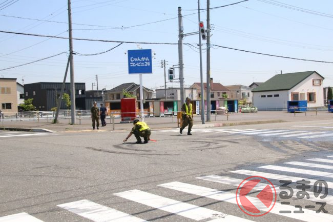 これが戦車を公道を走らせる現実の大変さの一端です。装軌式の戦車や装甲車が走る経路は決められており、交差点などには誘導と安全管理の自衛隊員が立ちます。また周辺への振動や道路の破損を防ぐため低速で走行しなければなりません。