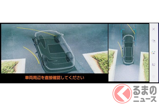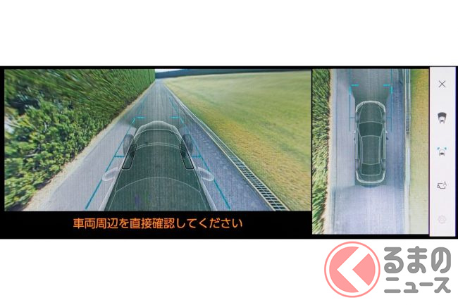 予防安全技術では、車両を上から見たような映像をセンターディスプレイへ表示するパノラミックビューモニターに、撮影した路面の映像を車両直下に合成表示することで車両下方の路面状況、タイヤ位置などの把握を補助する床下透過表示機能を追加。駐車やすり抜けをサポートします。