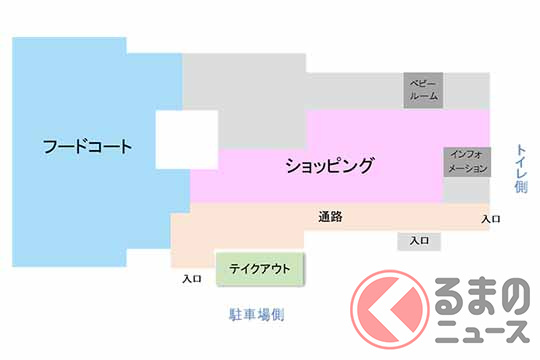同SAは店舗の新装を進めており、2月にフードコート「御馳走食堂」が、6月にショッピングコーナー「御馳走市場」がそれぞれリニューアル。そして8月10日には、新しいテイクアウトコーナーがオープンします。