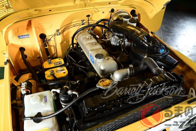 今回出品された40系ランドクルーザーはピックアップトラックモデル。パワートレインは、4.2リッター直列6気筒エンジンに、4速MTが組み合わされ搭載されています。