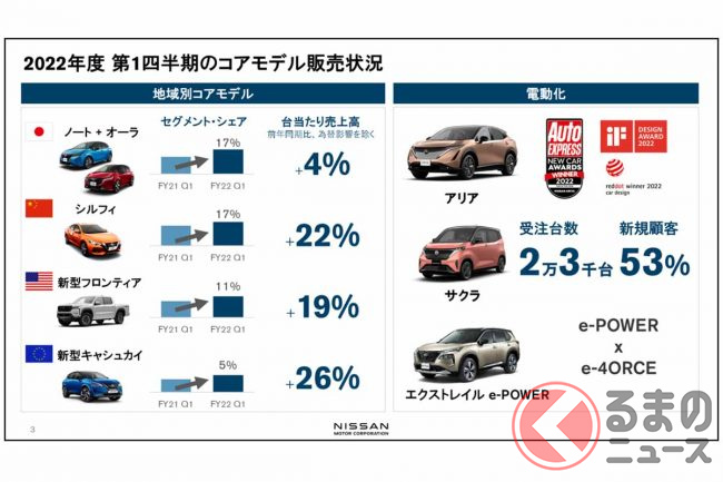 これは2022年度第1四半期決算発表で、コアモデルの販売状況のひとつとして公表されたものです。