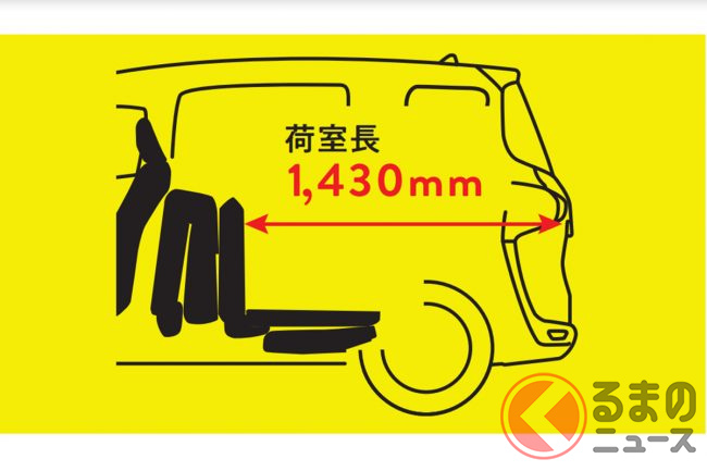 荷室を最大化した「フラットラゲージモード」時の荷室長(セカンドシートの背からバックドアまでの距離)は1430mm。小型なボディサイズのなかでは十分な荷室空間といえますが、1.4m程度の荷室長ではとても就寝までは望めません。