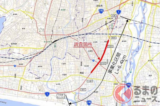 国土交通省中部地方整備局浜松河川国道事務所は2022年8月1日、静岡県内の国道1号浜松バイパスで、立体化事業の設計に伴い現地調査に着手すると発表しました。