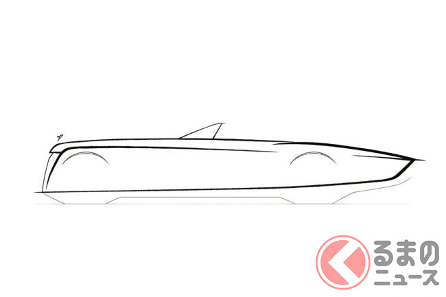 フロントフェイスは、ロールスロイスの象徴的なパルテノングリルを基調としたデザインとしながらも、Jクラス ヨットからインスピレーションを受けたという、全長5800mmの長く尻すぼみなボディと木製の後部デッキがまさにボートを思わせるデザインになっています。