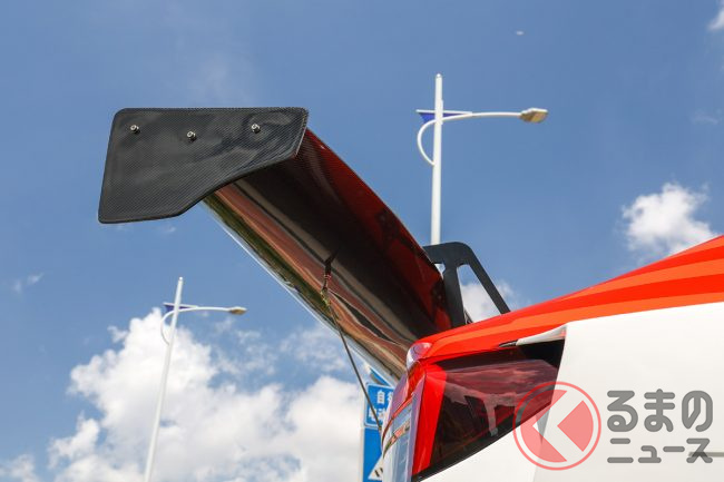ボディ後端からはみ出した大型リアウイングの存在感も相まって、本格的なスポーツ走行を予感させる仕上がりといえるでしょう。