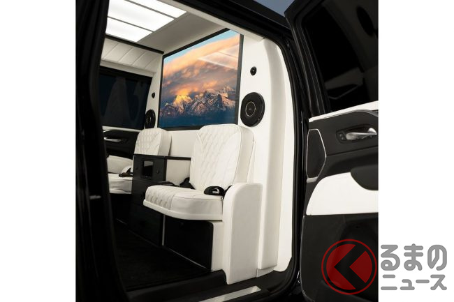 今回IKASがキャデラックをベースに改造を施した「アーマード キャデラック・エスカレード“チェアマン”VIPエディション」のボディサイズは、全長5766mmx全幅2060mmx全高2068mm。通常のエスカレードと比較してキャビンの高さが5インチ(約127mm)高くなっており、広々とした室内空間を実現しています。
