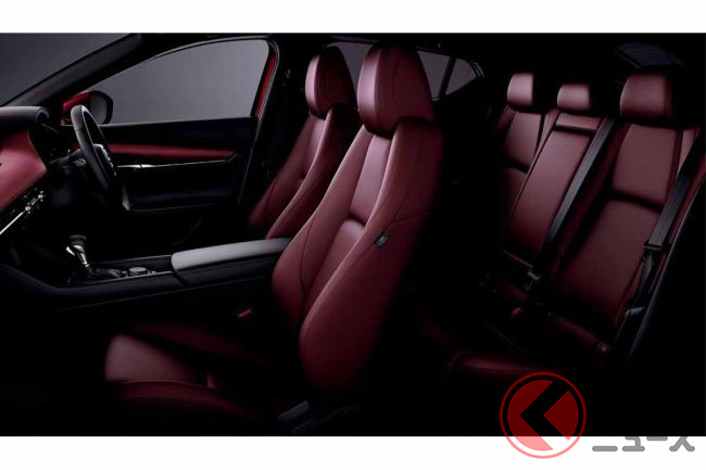 そして本革内装をメーカーオプション設定し、MAZDA3はバーガンディレザーパッケージ(ファストバックのみ)、ブラックレザーパッケージの2種類、CX-30はホワイトレザーパッケージ、ブラックレザーパッケージの2種類を用意しています。