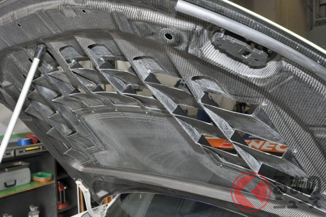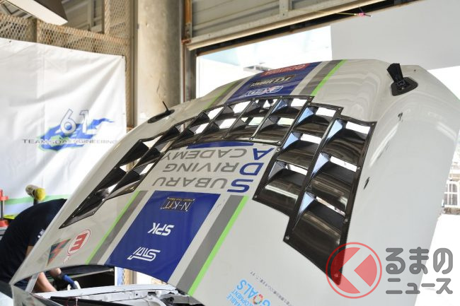 実は第3戦菅生から投入されているカーボンボンネットは、SUBARUならではの新しい取り組みから生まれたアイテムだといいます。