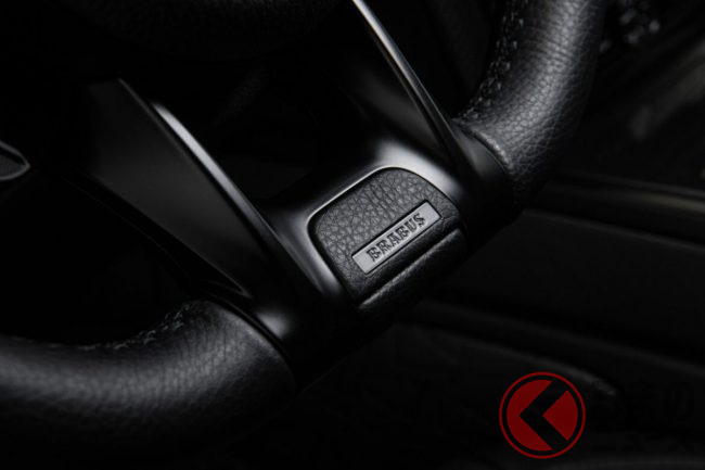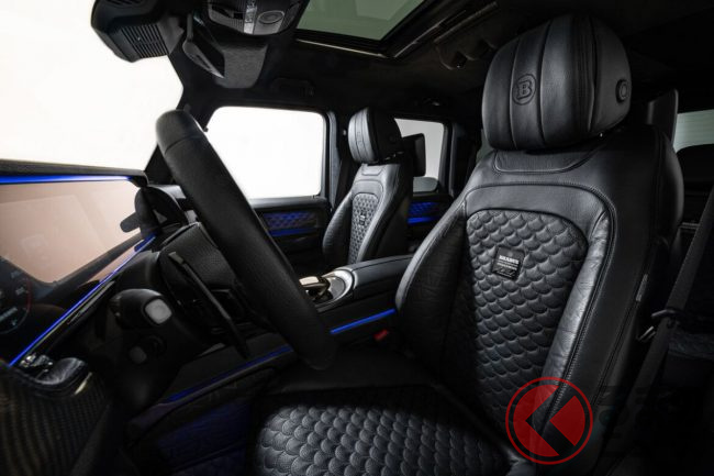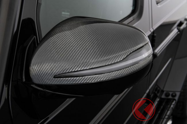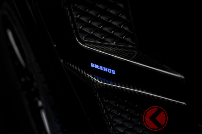 エクステリアは、ルーフやボンネット、サイドパネル、スペアホイールカバーなど、各所にカーボン製のパーツがあしらわれ、ブラバスならではの「1秒の驚き」を実現しています。