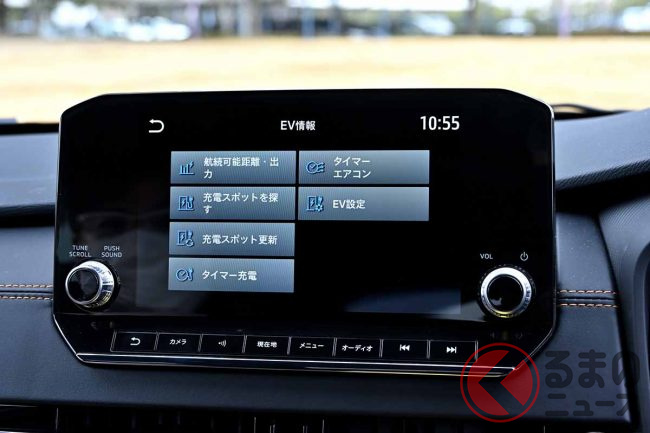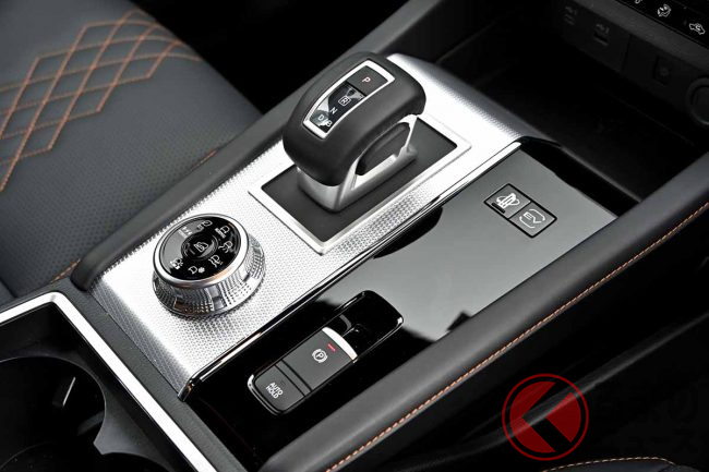 目的地に到着したら、今度は内装に目を向けます。アウトランダーPHEVの内装は、細部にまでこだわってデザインしています。水平基調のインパネにしているため、悪路での傾きも感じやすいそう。テリーさんも「レンジローバーとかのイメージ」「今までの三菱車のイメージとはまったく違う」と語っています。