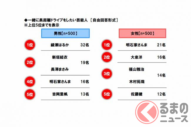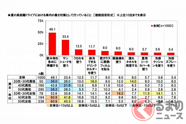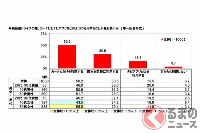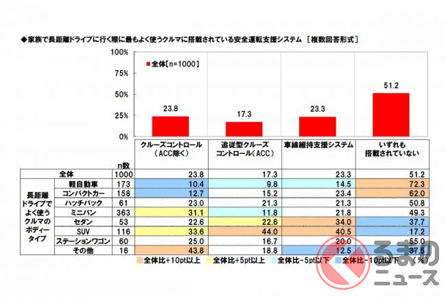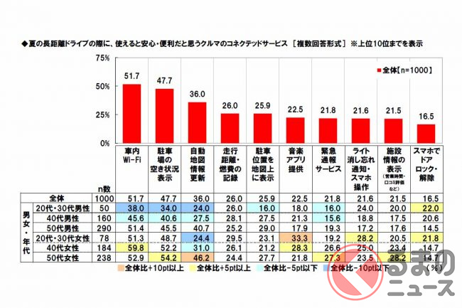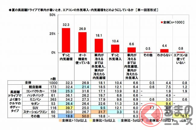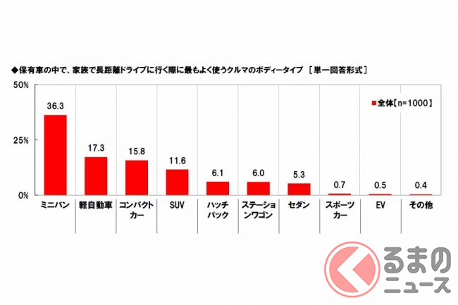 調査は、ネットエイジアリサーチのモニター会員を母集団とし、配偶者と子供がいて自家用車を使って家族で長距離(片道100km以上)ドライブをしたことのある全国の20歳から59歳までの1000人(男女各500人)が対象。