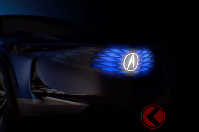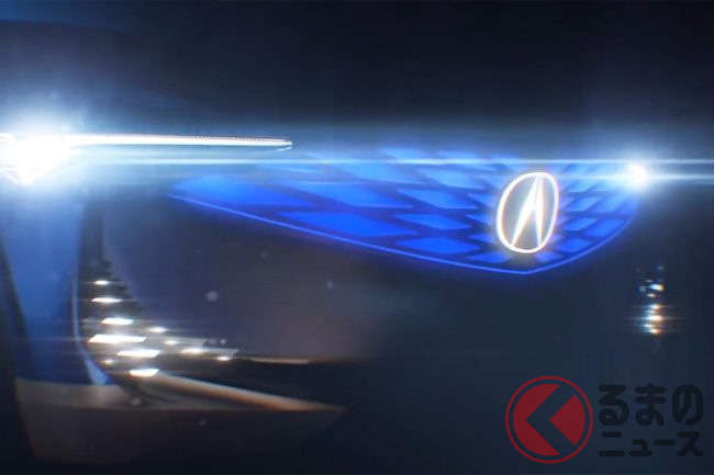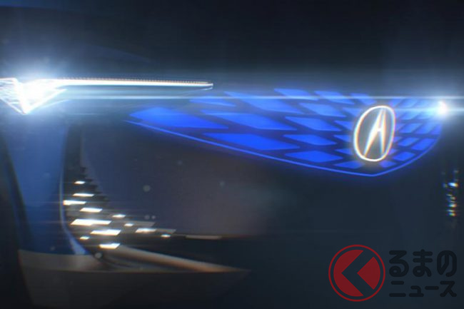 暗闇に光る「新型モデル」世界初公開へ エンブレム輝くアキュラ「EVコンセプト」を8月18日に米・モントレーで発表!