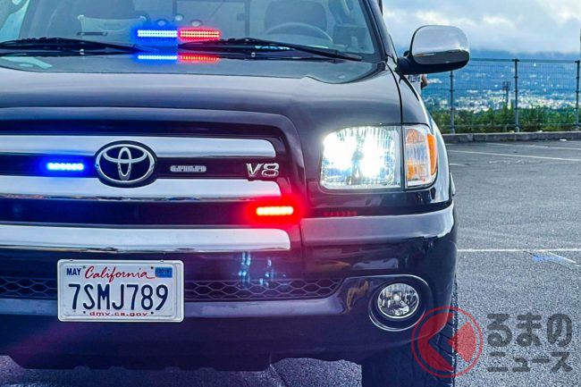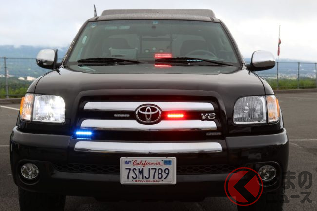 なぜトヨタ「タンドラパトカー」が国内に存在する? 赤青ランプ光る姿に感激!? 米国パトカーが日本で走行出来る理由とは