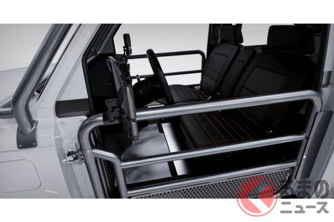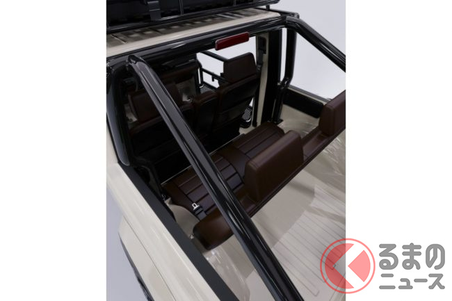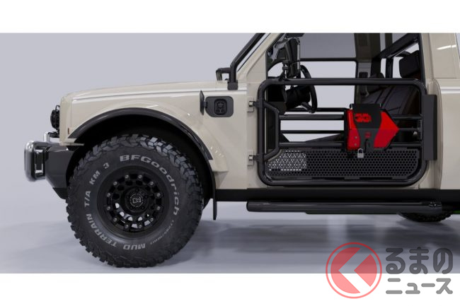 Adventure Series REXのエクステリアは、ランドローバー「ディフェンダー」やスズキジムニーを連想させる直線的なデザイン。通常のREXと比較して、ドアは鉄格子のようなものに、ルーフはロールバーに置き換わっています。