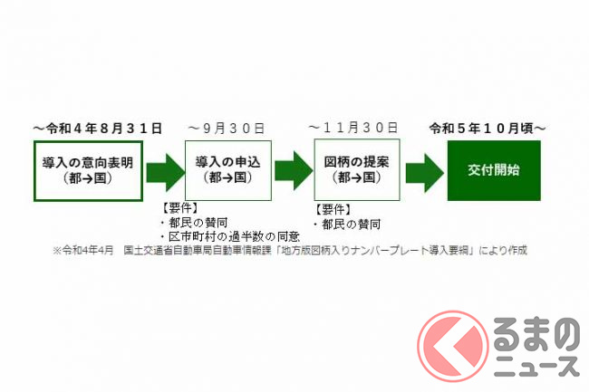 都は2022年8月5日、地域振興と観光振興を目的に、図柄入りナンバープレートの導入に向けて取り組みを進めると発表しました。