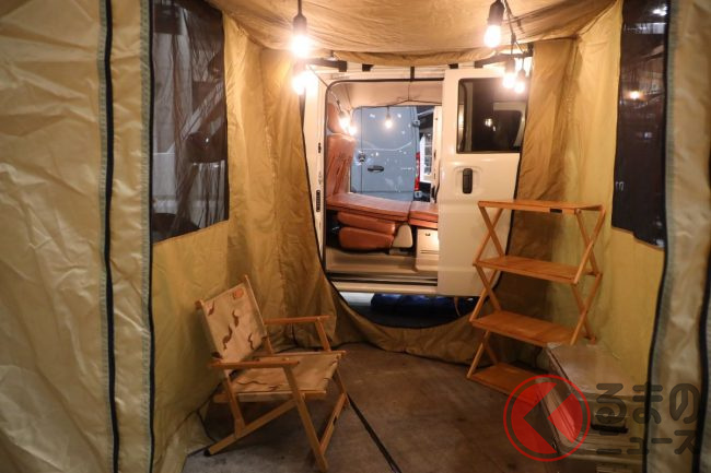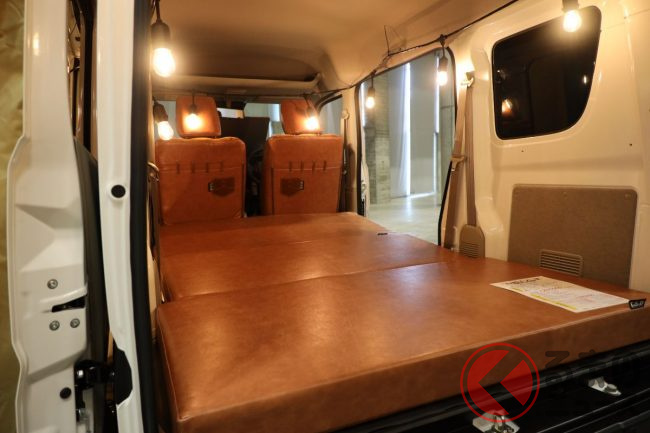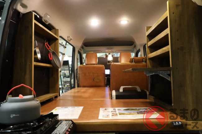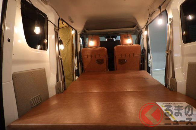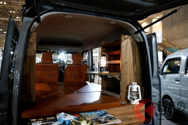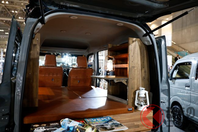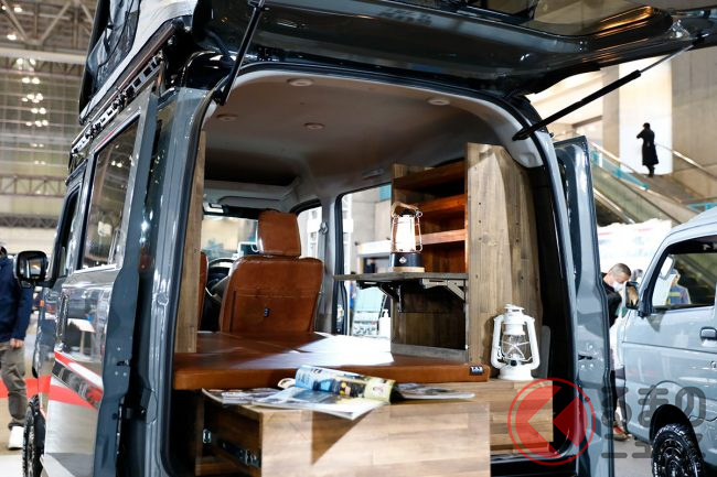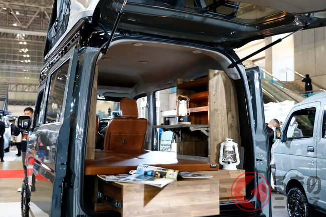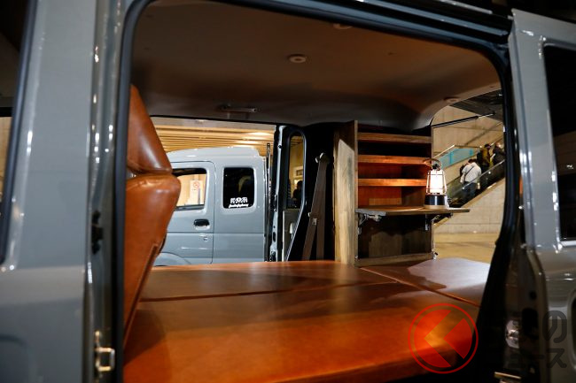ゴツ顔「軽バン車中泊仕様」 茶革内装の「ジムリィ」がスゴい! インチアップされたカスタマイズとは