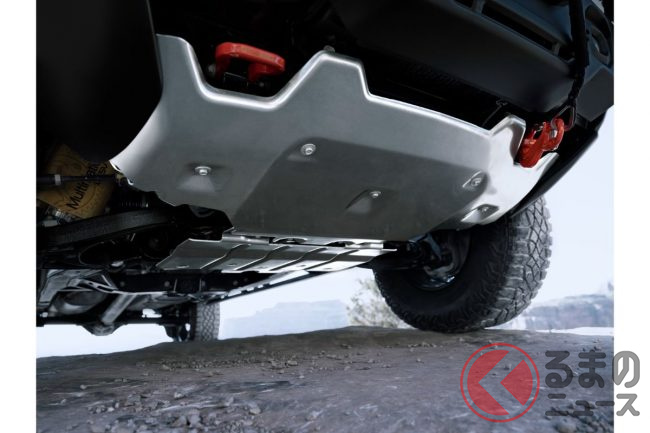 ダンパーにはマルチマチック製DSSVダンパーを採用、アンダーボディにはスキッドプレートが装備されるなど、オフロードの走破性能を向上させています。