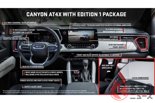 キャニオンはGMCのミッドサイズピックアップトラックです。競合車種はトヨタ「タコマ」や日産「フロンティア」など。今回キャニオン AT4Xの発表と同時に2023年型となる新型モデルが発表されています。