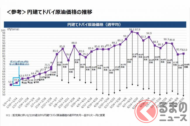 原油価格については1兆5000億円を充当し、ガソリン補助金の上限を1リットル当たり25円から35円に引き上げ、さらにそれでも全国平均ガソリン価格が1リットル170円を超過したら、その分の2分の1を支援すると発表しています。