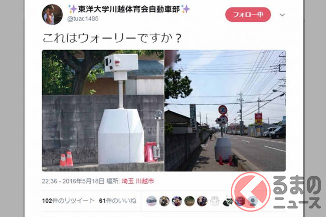移動できるタイプが初めて目撃されたのは、半固定式オービスと呼ばれるタイプで、2016年5月18日、埼玉県川越市上戸の市道に置かれていた白いロボットのような機器を東洋大学自動車部の学生が初めてSNSに投稿したのが始まりです。私(オービスガイド 大須賀克巳)もすぐに学生と連絡を取り写真の使用許可をいただき翌日に現地へ駆け付けたのですが、残念ながらすでに撤去されていました。